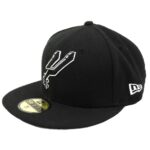 -50%Boné New Era Basquete San Antonio Spurs, modelo 59FIFTY fechado, tecido poliester resistente, na cor preta e recebe bordado emblema do time, na parte frontal, na lateral direita bordado do mapa do Texas, a onde o time começou sua jornada na NBA.